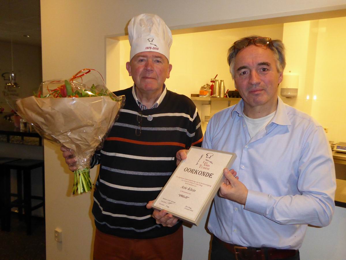 Tijdens de Algemene Ledenvergadering van 19 maart 2016 is Arie Klein tot erelid van Les Amis de Cuisine benoemd.